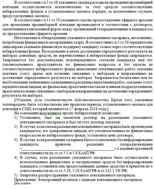 Если жалоба в Центральную избирательную комиссию подается в письменном виде, она должна быть составлена с соблюдением норм действующего законодательства. Ее можно написать по образцу, предоставив дополнительные материалы для подтверждения факта нарушения.