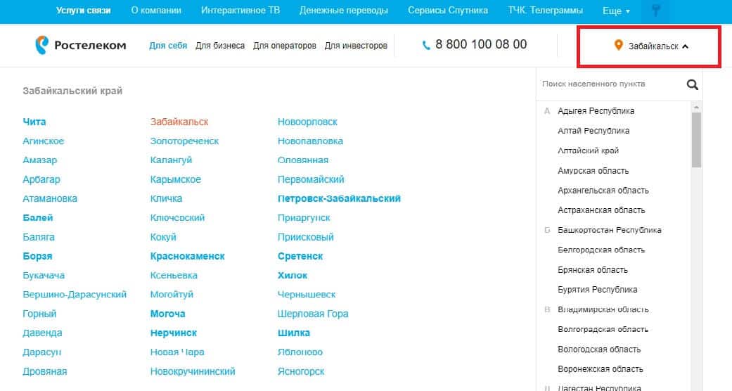 Полный перечень отделений в регионах можно найти на сайте http://www.rostelecom.ru/regions/.