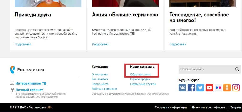 Претензии к работе «Ростелекома» можно оставлять на страницах официальных сообществ компании в социальных сетях: